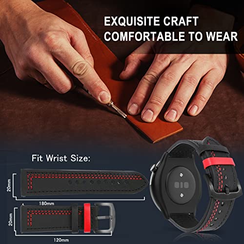 ZoRoll Cinturino Pelle per Amazfit GTR Mini/GTS 4 Mini/GTS 4/GTS 3/GTS 2 Mini/GTR 42mm, 20mm Vintage Pelle Cinturino di Ricambio Sportivo per Amazfit Bip 3 Pro/Garmin Venu Sq 2/Venu 2 Plus -Nero&Rosso