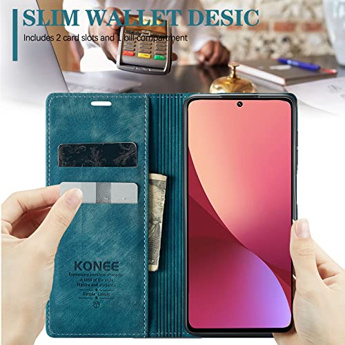ZoRoll Cover Compatibile con Xiaomi 12/Xiaomi 12X, PU Pelle Premium Portafoglio Custodia, [RFID Blocking][Slot per Scheda][Funzione Stand] Antiurto Flip Custodia Compatibile con Xiaomi 12 - Blu-verde