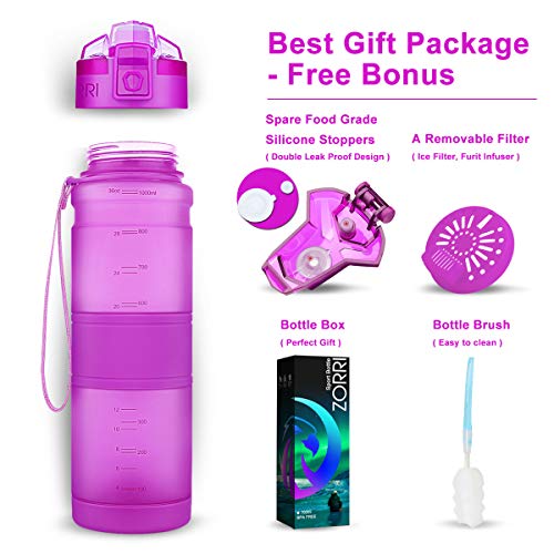 ZORRI Borraccia Sportiva BPA Free Tritan 14oz, 17oz, 24oz, 1l / 32oz - Bottiglia da Palestra Riutilizzabile Ideale da Corsa, Bici, Ciclismo, Scuola Bambini, Viaggi e Altro