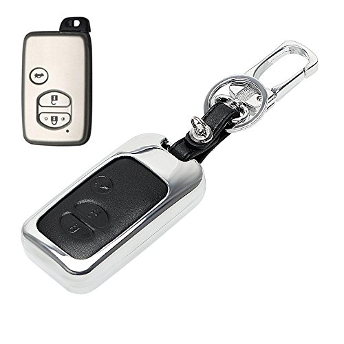 Zorux Caso chiave in lega di zinco uomini chiave Portafogli sacchetto per auto in pelle per Toyota Land Cruiser Prado Camry BYD Car Cover portachiavi di Keychain [3 Black Button]