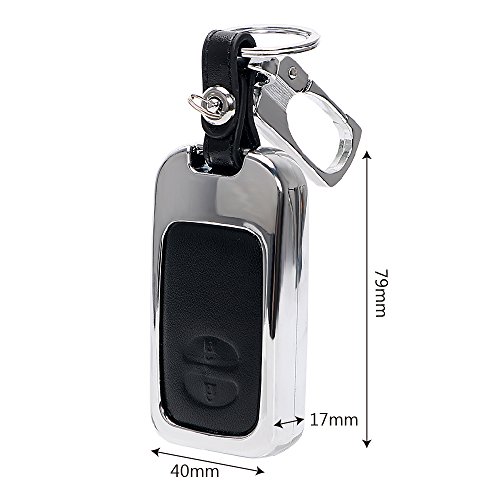 Zorux Caso chiave in lega di zinco uomini chiave Portafogli sacchetto per auto in pelle per Toyota Land Cruiser Prado Camry BYD Car Cover portachiavi di Keychain [2 Black Button]