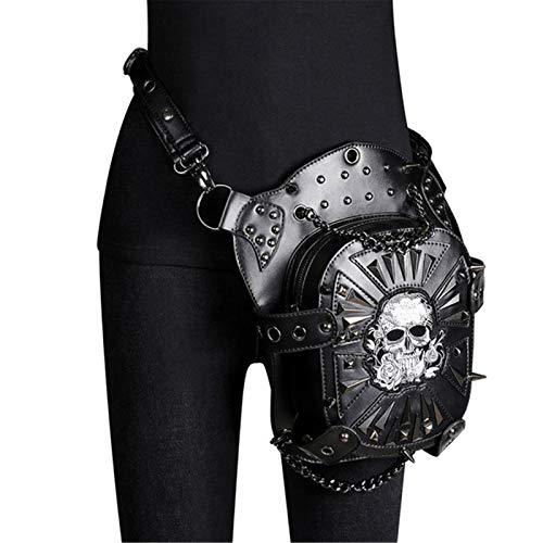 ZoSiP Borsa a Vita Punk Hip Borsa in Vita Steampunk Fanny Pack Fashion Gothic Skull Pelle Shoulder Brownbody Messenger Coscia Gamba Hip Holster Borsa Borsa da Motociclista in Pelle