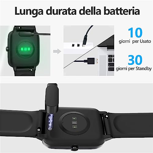 5 ATM Impermeabile: Questo smartwatch ha una classificazione di impermeabilità di 5 ATM, il che significa che può resistere all'acqua fino a un certo punto. Tuttavia, si consiglia di evitare di indossarlo durante il bagno o in ambienti marini, per evitare possibili effetti negativi sulla funzionalità dell'orologio a causa di temperatura o salinità. Pertanto, per proteggere il suo smartwatch, si consiglia di toglierlo temporaneamente in queste situazioni.