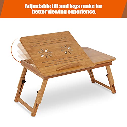 Zoternen Tavolino Porta Laptop Portatile, Tavolino da Letto in bambù Vassoio da Letto Pieghevole con cassetto, Tavolino d'Appoggio Inclinabile, 50x30x20cm