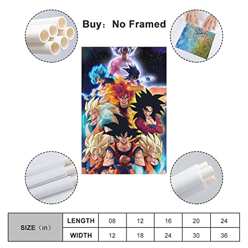 ZOUWU Dragon Ball Poster classico anime Poster dipinto decorativo su tela, decorazione da parete, soggiorno, camera da letto, 50 x 75 cm
