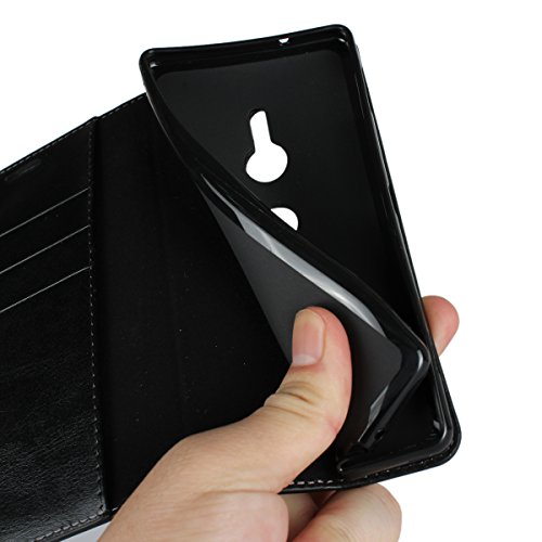 Zouzt Caso per Sony Xperia XZ2 Custodia a Portafoglio Folio Flip Stand View, Custodia in Pelle con Funzione di cavalletto/Slot per schede (Nera)