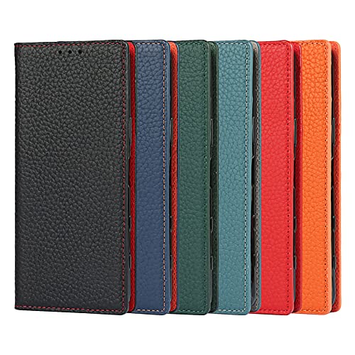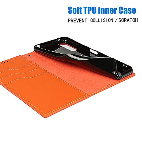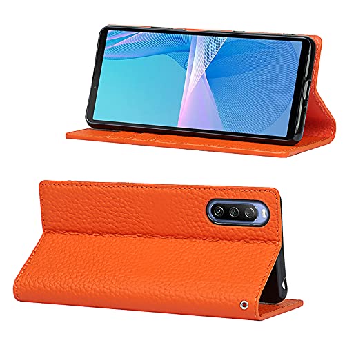 Zouzt Custodia in pelle premium Sony Xperia 10 III 5G Custodia a portafoglio con custodia magnetica e fessura per carta Custodia in vera pelle Compatibile con Sony 10 III 5G arancia