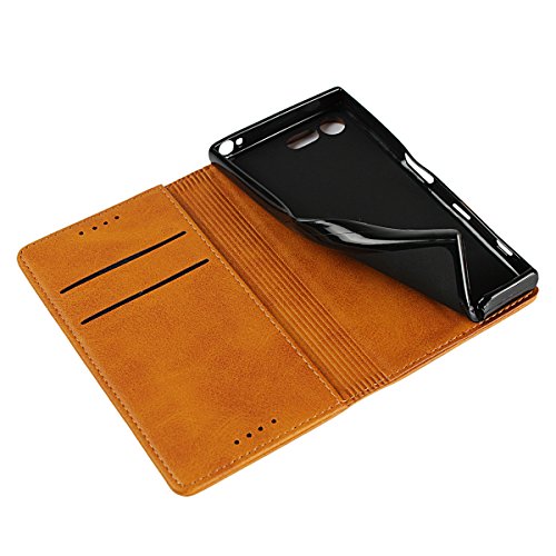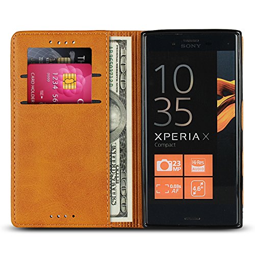 Zouzt Custodia a Portafoglio Flip in Pelle Vagen Compatibile con Sony Xperia X Compact Custodia con Chiusura Magnetica/Funzione cavalletto/Slot per schede (Marrone Chiaro)