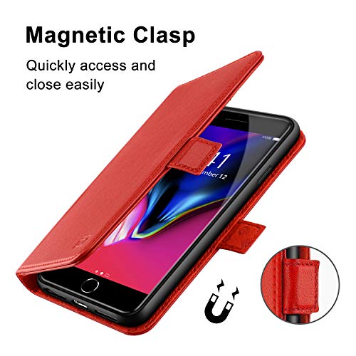 ZOVER Custodia iPhone 8 Plus Cover iPhone 7 Plus, Pelle Portafoglio Custodia con 3 Slot per Schede, Chiusura Magnetica, Funzione Stand per iPhone 8 Plus iPhone 7 Plus - Rosso