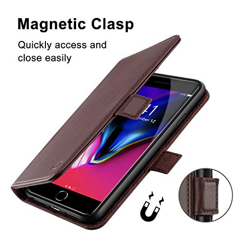 ZOVER Custodia iPhone 8 Plus Cover iPhone 7 Plus, Pelle Portafoglio Custodia con 3 Slot per Schede, Chiusura Magnetica, Funzione Stand per iPhone 8 Plus iPhone 7 Plus - Marrone Scuro