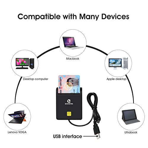ZOWEETEK Lettore dnie,Lettore dni elettronico,Compatibile con tutte le schede d'identità con USB.
