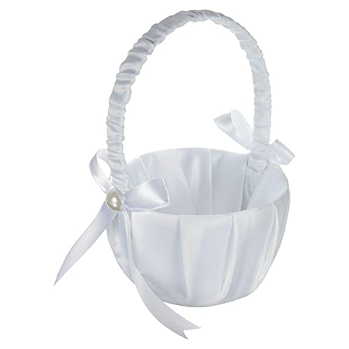 【Design】Questo cesto di fiori con fiocchi di raso e perle finte adornate su ogni lato aggiunge un tocco elegante al vostro matrimonio processionale.