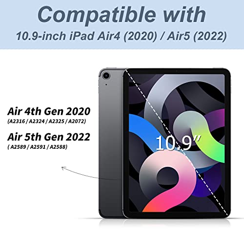 Modello di compatibilità: custodia appositamente progettata per iPad Air 5a generazione 2022 rilasciata (numero modello: A2589/A2591/A2588)/iPad Air 4a generazione 2020 rilasciato (numero di modello: A2316/A2324/A2325/A2072), non compatibile con altri dispositivi, si prega di controllare il numero di modello posteriore del vostro iPad prima di ordine.