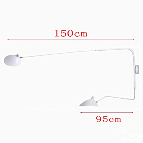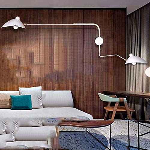 Zozmy Lampada da Parete Bianca Vintage Industriale Orientabile Lungo Braccio Lampada da Comodino Lampada da Lettura con Interruttore Metallo Applique da Parete E14 * 2 Soggiorno Studio,150+95cm