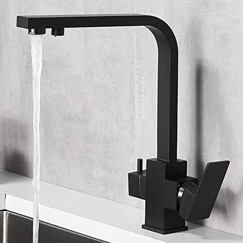 ZPSPZ Rubinetto Cucina 3 Vie Miscelatore Cucina 3 in 1 Rubinetto Depuratore D'Acqua A Tre Vie in Ottone Nero Caldo e Freddo Depuratore D'Acqua Potabile Diretto-A