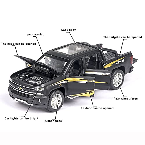 Zpzzy simulazione di auto modello di resilienza per bambini 1:32 pick-up fuoristrada auto giocattolo con funzione di resilienza della porta del suono e della luce cerchi in lega del corpo in gomma met