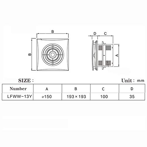 ZQYR Extractor Fans@ 6" Bassa energia silenziosa Bagno Cucina aspiratore 150 Millimetri con Estrazione Ventilazione sensore di umidità/Volume d'Aria: 320m³ / h - 18w