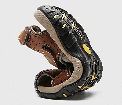 La tomaia in pelle è traspirante e ad asciugatura rapida.La suola è spessa, robusta e antiscivolo, comoda da indossare e stare in piedi.La chiusura in velcro rende facile regolare la scarpa così stretta che puoi anche sprint.I sandali chiusi stanno molto bene protetto nella zona della punta, evitando efficacemente gli impatti durante l'escursionismo, il trekking, la corsa, il ciclismo, la guida o altre attività all'aperto.