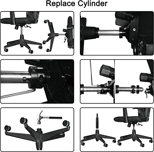 Riparate la vostra sedia da ufficio con abbassamento: oltre alla possibilità di smontare l'inclinazione della sedia da ufficio, è possibile anche riparare il cilindro del gas della vostra sedia da ufficio. Sono incluse istruzioni dettagliate per l'installazione e l'installazione richiede solo pochi minuti. I pezzi di ricambio della sedia da ufficio possono sostenere un peso fino a 600 libbre. Si prega di regolare l'altezza della seduta desiderata prima di installare questa protezione per sedia da ufficio.