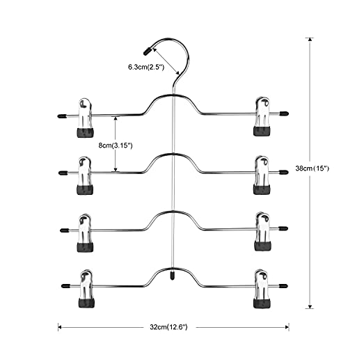ZriEy Grucce per pantaloni salvaspazio multiple con clip, set di 4 grucce in metallo, per 4 pantaloni, con 8 clip regolabili, antiscivolo, per pantaloni/gonne antiscivolo