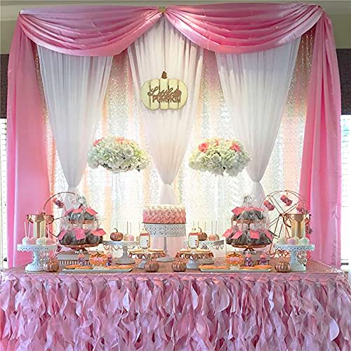 ZRSWV 2 pannelli, drappeggio in tessuto chiffon, 35 m, mantovana per finestra trasparente, tende da sfondo, per cerimonie nuziali, bianco e rosa