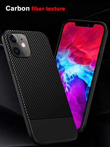 ZSCHAO Cover per iPhone 12 Mini Fibra di Carbonio Silicone Slim Sottile Antiurto TPU Custodia Cover Compatibile con iPhone 12 Mini Carbon Libro Opaco Matte Case Bumper Nero