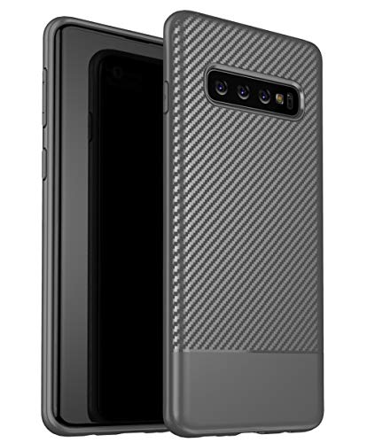 ZSCHAO Cover per Samsung Galaxy S10 Fibra di Carbonio Silicone Slim Sottile Antiurto +Vetro temperato TPU Custodia Cover Compatibile con Samsung Galaxy S10 Carbon Libro Opaco Matte Case Bumper Grigio