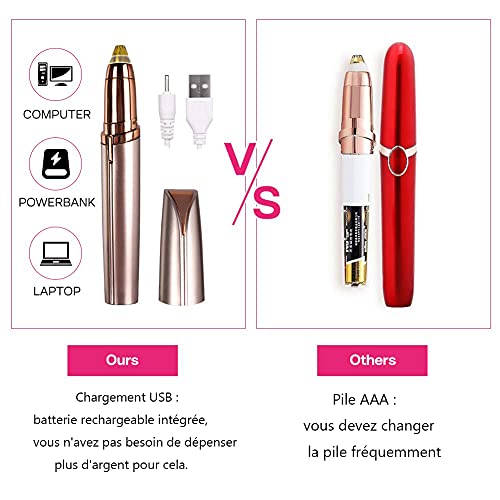 Epilatore per sopracciglia ricaricabile tramite USB: epilatore elettrico da donna viso è dotato di una batteria Ni-Cd AAA integrata, che può essere caricata tramite il cavo di ricarica Android;