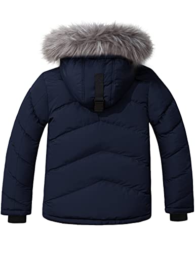ZSHOW Giacca Invernale Caldo Giubbotto con Cappuccio in Pelliccia Parka Trapuntato Imbottita Capispalla da Esterno Idrorepellente Bambino Blu Scuro 128-134