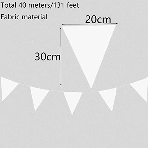 ZSNICEYH 40 metri 131 piedi bianco tessuto bandierine triangolari bandierine bandierine bandierine per feste decorazioni ghirlande per matrimoni interni ed esterni