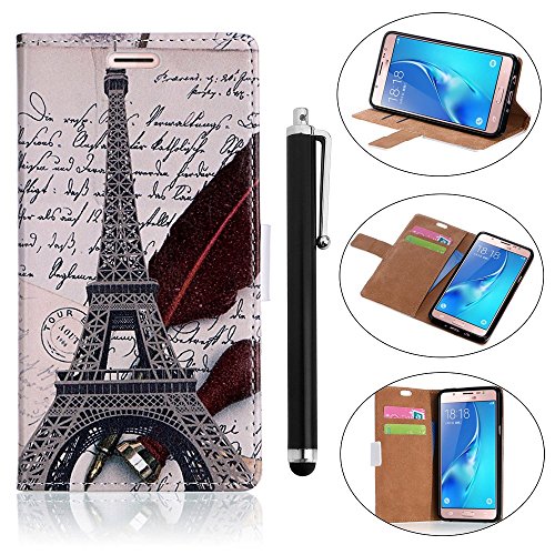 ZStarLn luxury Portafoglio Protettiva Custodia in pelle per Samsung Galaxy J7 2016 Cover Caso #1 + 3 pellicola protettiva e Stylus pen