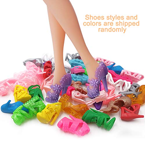 Il pacchetto include: 5 vestiti + 20 scarpe + 10 collane + 20 corone per bambola (stili casuali). 100% nuovo di zecca e di buona qualità.
