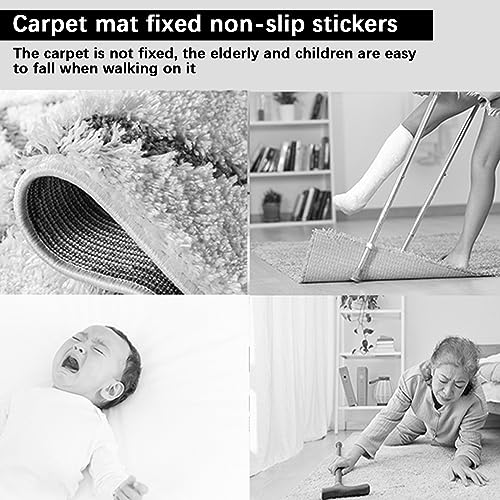 ✅【Facile Da Usare E Non Lascia Segni】Adesivi per tappeti antiscivolo per tappeti applicare l'area bianca sul fondo del tappeto e premere l'area chiara stampata sul pavimento, premere con decisione il tappeto, quindi far scorrere il nastro del tappeto lungo la superficie, se si lo vuoi per rimuovere o pulire, sollevalo lentamente dal pavimento.