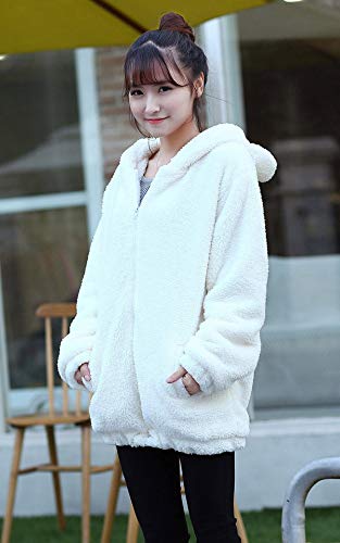 Zteng Felpe con Cappuccio con Zip Coda soffice Moda Donna, Inverno Caldo soffice Doppio Velluto Felpa con Orso o Coniglio (White Bear)