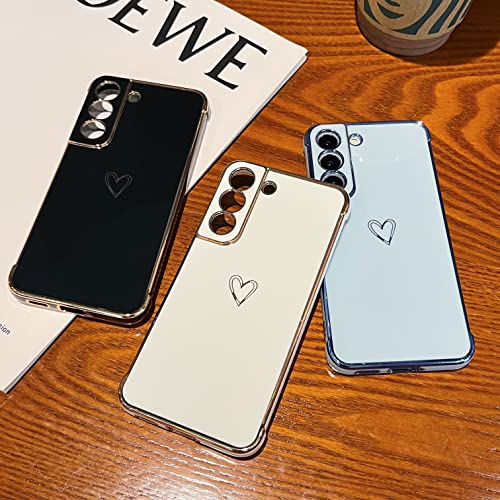 ZTOFERA Compatibile con Samsung Galaxy S21 FE 5G Custodia protettiva in silicone flessibile con motivo a cuore dorato bordatura antiurto cover paraurti nera