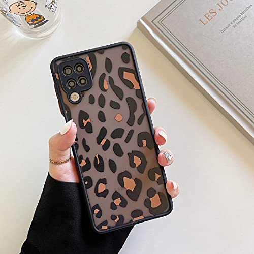 ZTOFERA Cover Compatibile con Samsung Galaxy A12 / M12, Custodia Antigraffio Traslucido Glassato Duro Back Case Silicone Bumper Cover con Motivo Leopardo, Marrone