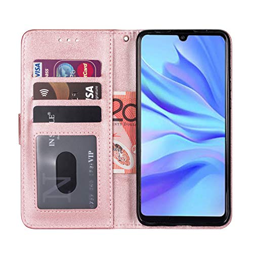 ZTOFERA Custodia a Portafoglio per Huawei P20 Lite, Custodia Protettiva in Pelle PU Custodia Tasca con Cerniera Magnetica Flip Stand Case Cover per Huawei P20 Lite - Oro Rosa