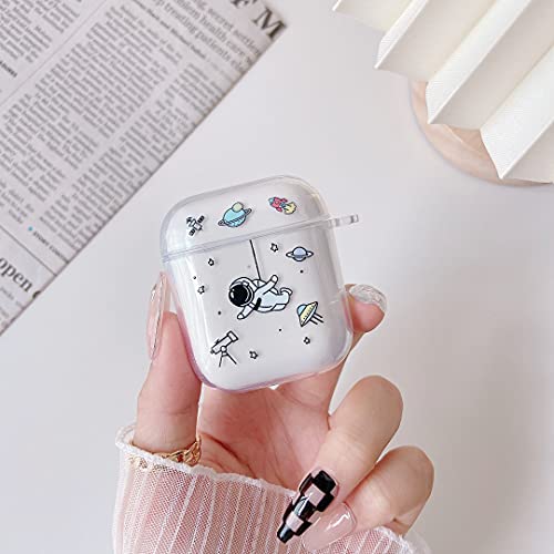ZTOFERA Custodia Rigida TPU Trasparente per Apple Airpods 1 e 2 Case Cover, Antiurto Cover con Carino Motivo Astronauta Custodia Protettiva Anti-Graffio Portatile Airpods Cover, Flying Astronauta