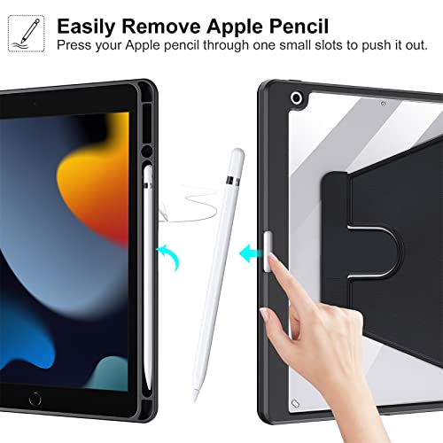 ZtotopCases Custodia per iPad 9a/8a/7a Generazione 2021,Copertura Anteriore in Pelle PU Premium,PC Traslucido Coperchio Posteriore,360 Gradi di Rotante Cover con Portapenne per iPad 10.2 Pollici, Nero