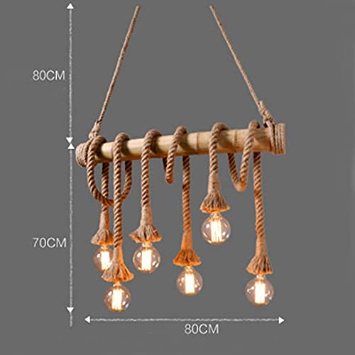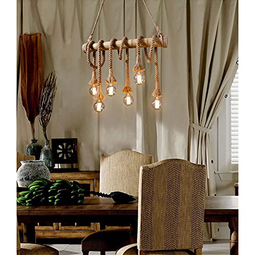 ZTTECH Lampada a sospensione a sospensione in corda di canapa industriale retrò a 6 luci in bambù (6-Luce)