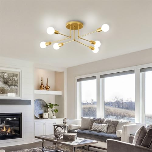 ZTWLEED Plafoniera vintage - lampada vintage E27 6 lampadine lampadario retrò,plafoniera oro,lampadario vintage per camera da letto,soggiorno,cucina,(senza lampadina)