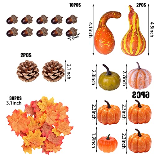 Zucche Artificiali per Autunno, Set di Decorazioni Autunnali, Mini Zucche Artificiale Simulazione Ghiande Foglia d'Acero Bacche, per Festa del Ringraziamento Natale Decorazioni per la Casa, 50 pezzi