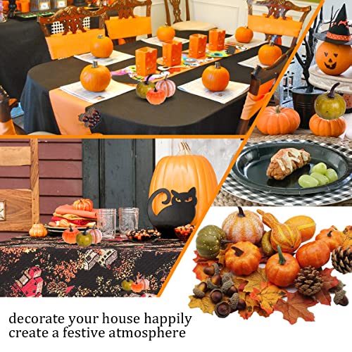 AMPIA APPLICAZIONE - Mini zucca autunnale perfetta per Halloween, Ringraziamento, Natale, feste autunnali, matrimoni e compleanni. Il set di decorazioni a forma di zucca può essere posizionato in soggiorno, giardino, negozio di frutta, supermercato o come decorazione da tavola ed è anche un oggetto fotografico ideale.