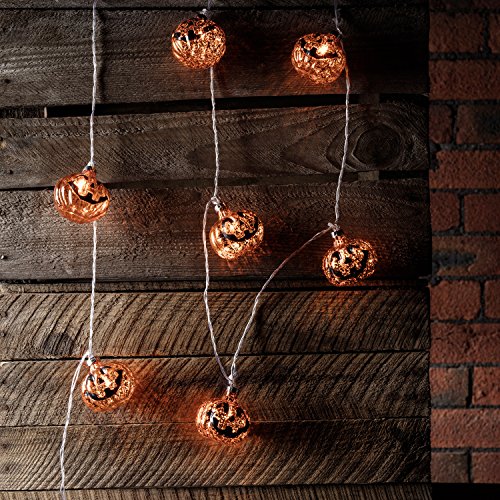 10 Zucche di Halloween con finitura metallizzata con LED e timer a batterie di Lights4fun