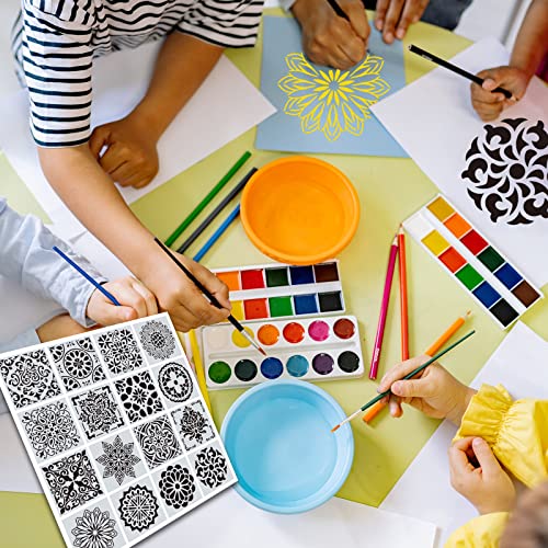 Zueyen 16 Pezzi Stencil Mandala Riutilizzabili per Pittura Stencil per aerografo, mobili, piastrelle, muri, Tela, Carta, arte e pittura su pietra Pavimento, 6 x 6 Pollici/ 15 x 15 cm (Classico)