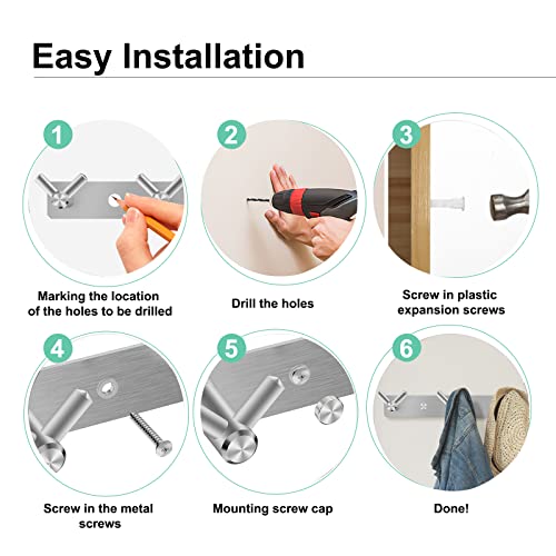 【Materiale in Acciaio Inossidabile】 I nostri ganci appendiabiti sono realizzati in acciaio inossidabile di alta qualità, che è impermeabile e resistente all'umidità, non arrugginisce e ha una lunga durata. I appendiabiti da parete possono essere utilizzati in ambienti umidi come bagni e cucine