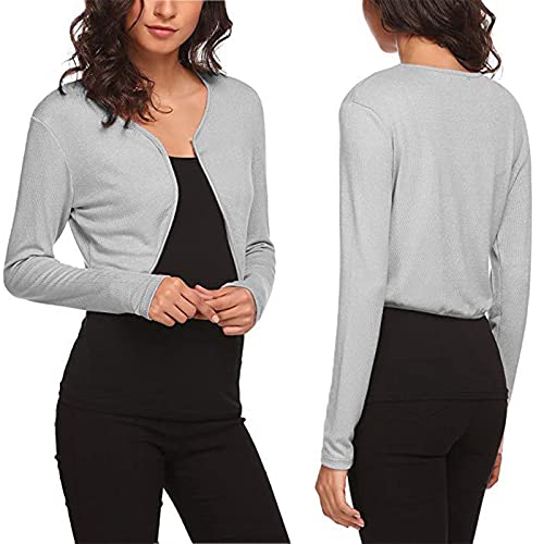 Zukmuk Bolero a Manica Lunga da Donna Cardigan Corto in Maglia chic ed Elegante, M, Grigio