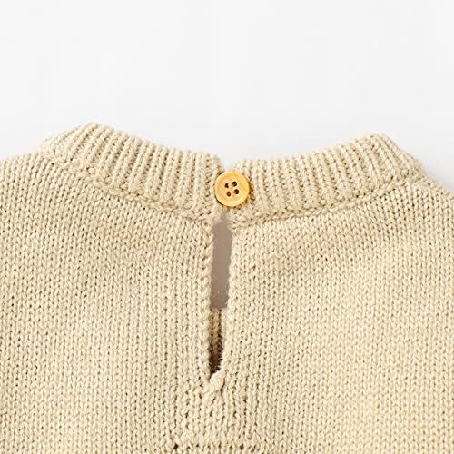 Zukmuk Pagliaccetto Neonato Unisex Tutina Lavorato a Maglia Maniche Lunghe Maglione Stampato Carino con Bottoni Abbigliamento di Natale Autunno Primavera (Alce Albicocca, 6-12 mesi)