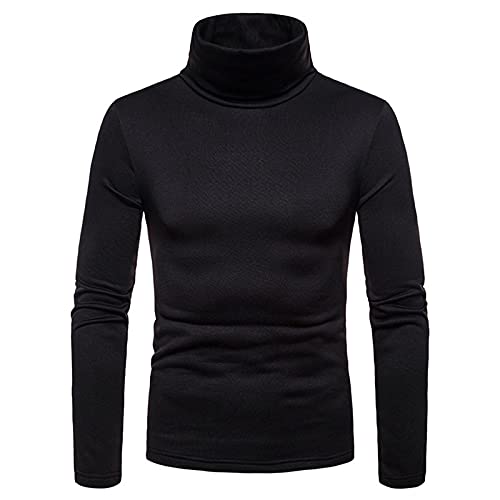Zukmuk Pullover Uomo Collo Alto a Maniche Lunghe Camicia Termica Dolcevita Autunno Invernale Slim Tinta Unita, Nero, XXL