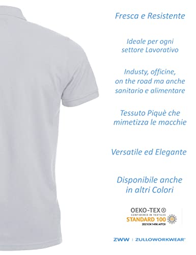 ZULLO WORKWEAR Polo Uomo Bianca da Lavoro Personalizzata con Nome o Testo (S, Bianco)